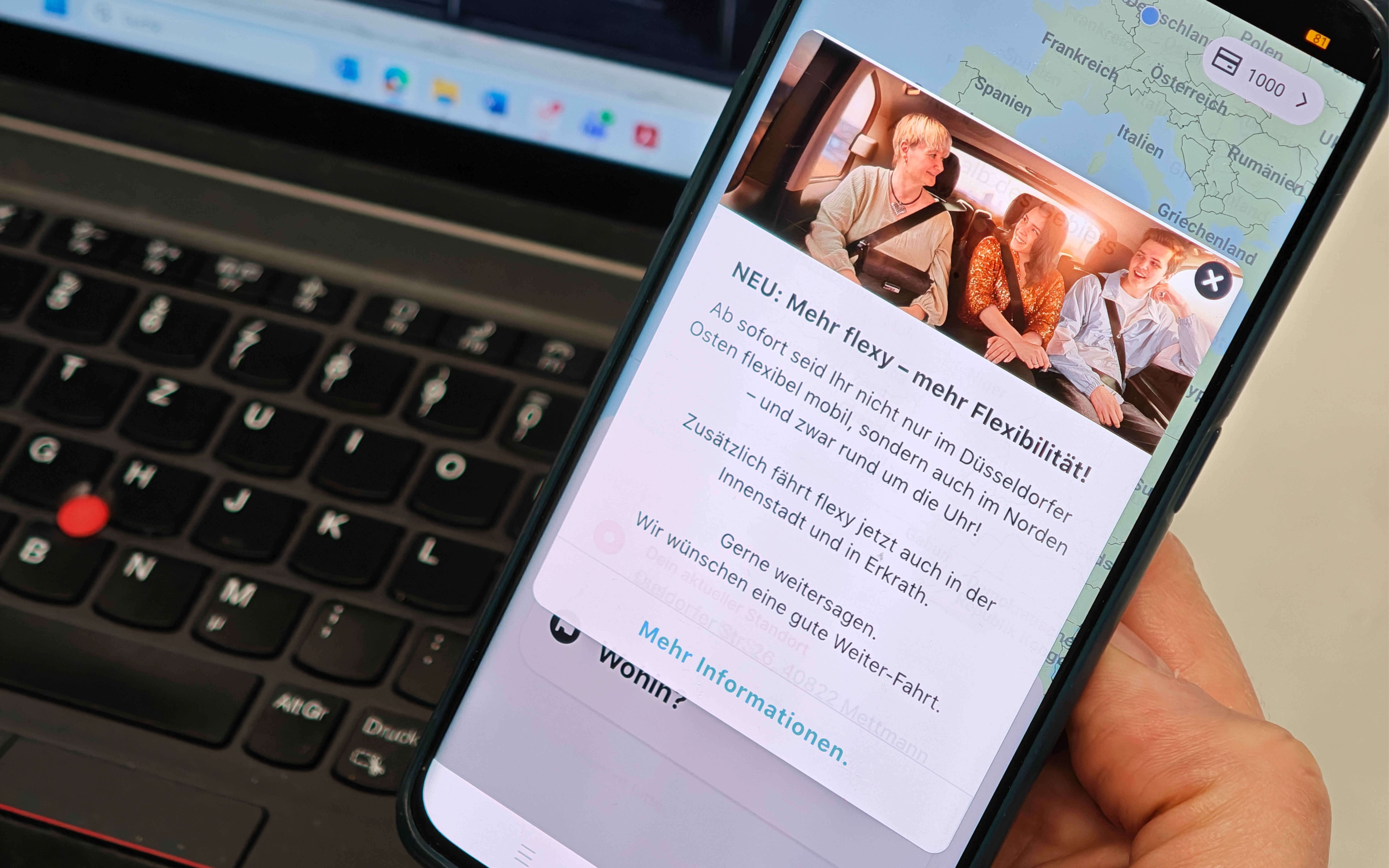 flexy in Erkrath ist ein gefördertes Pilotprojekt im Rahmen von ways2work und wird durch das Ministerium für Umwelt, Naturschutz und Verkehr des Landes Nordrhein-Westfalen unterstützt. Die Förderung läuft bis zum 31. Dezember 2027 und sichert den Einsatz von flexy im Stadtgebiet Erkrath von montags bis freitags, 6 bis 22 Uhr.
